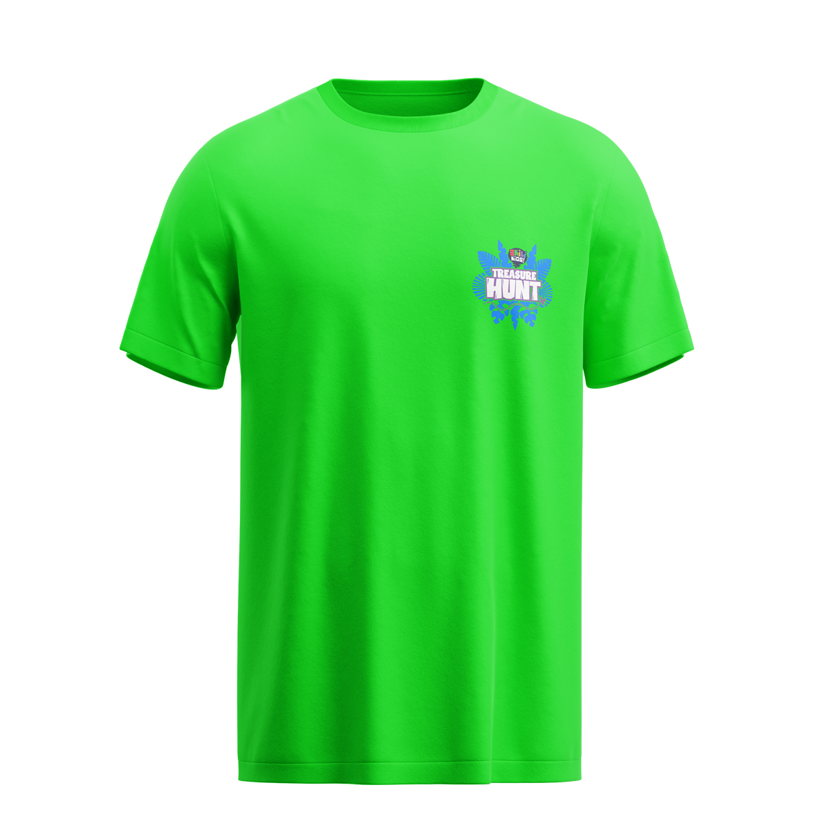 - Front Design: A playful Treasure Hunt logo with tropical leaves that sparks curiosity and adventure.